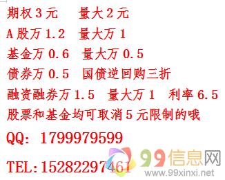 3.融资融券佣金万1.5,融资利率6(目前很多券商没有券-源,不能做融-券,我们公司可以做融-券的哦!)