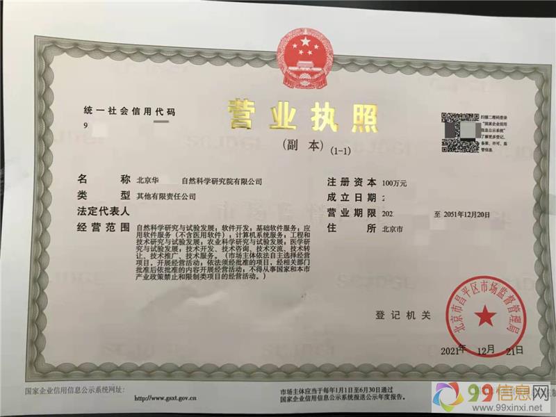 名 称 : 北京某某自然科学技术研究院有限公司www.99xinxi.net99信息网